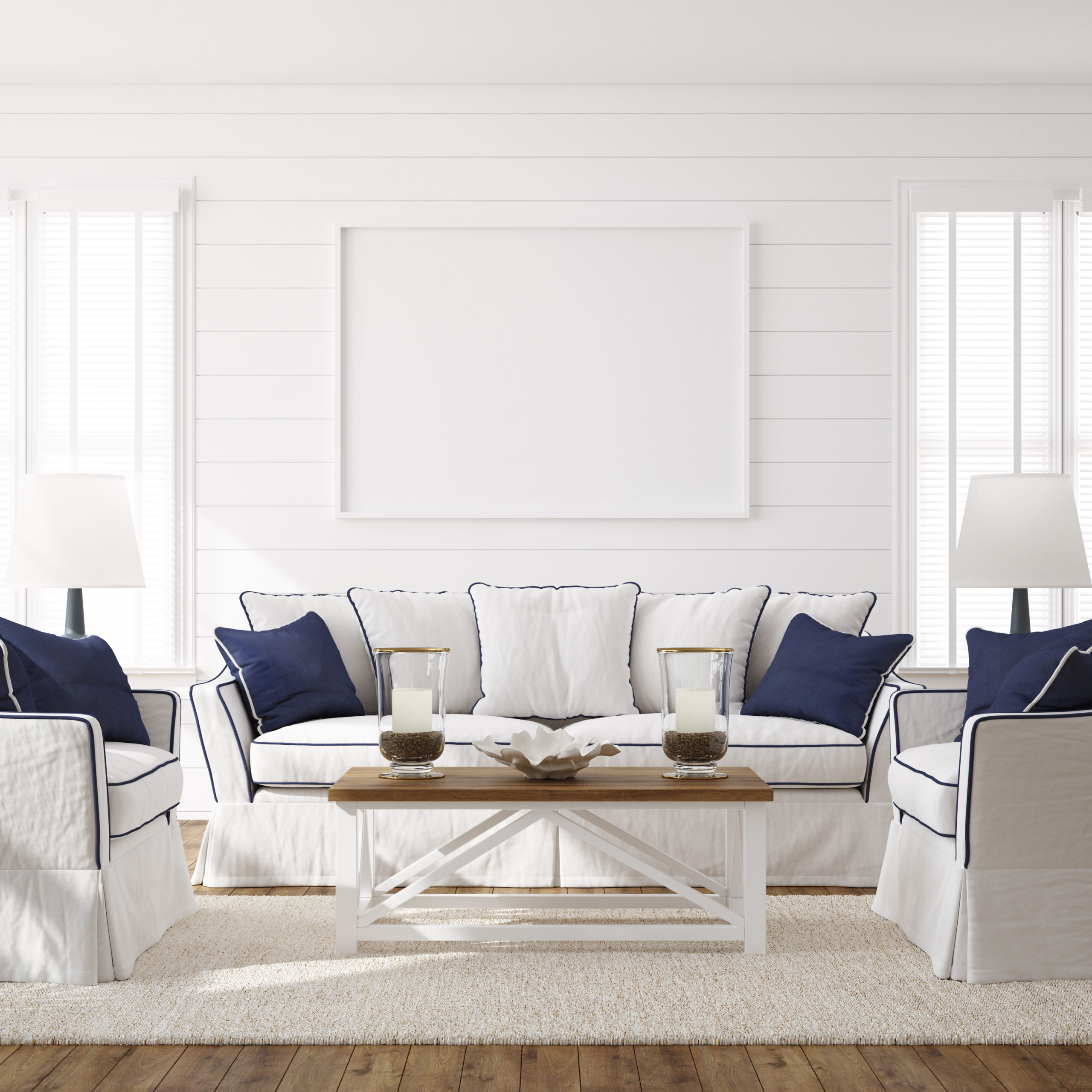 Hampton style living room interior with frame mockup Written by AtinteriorAdmin on 2020年10月15日. Previous