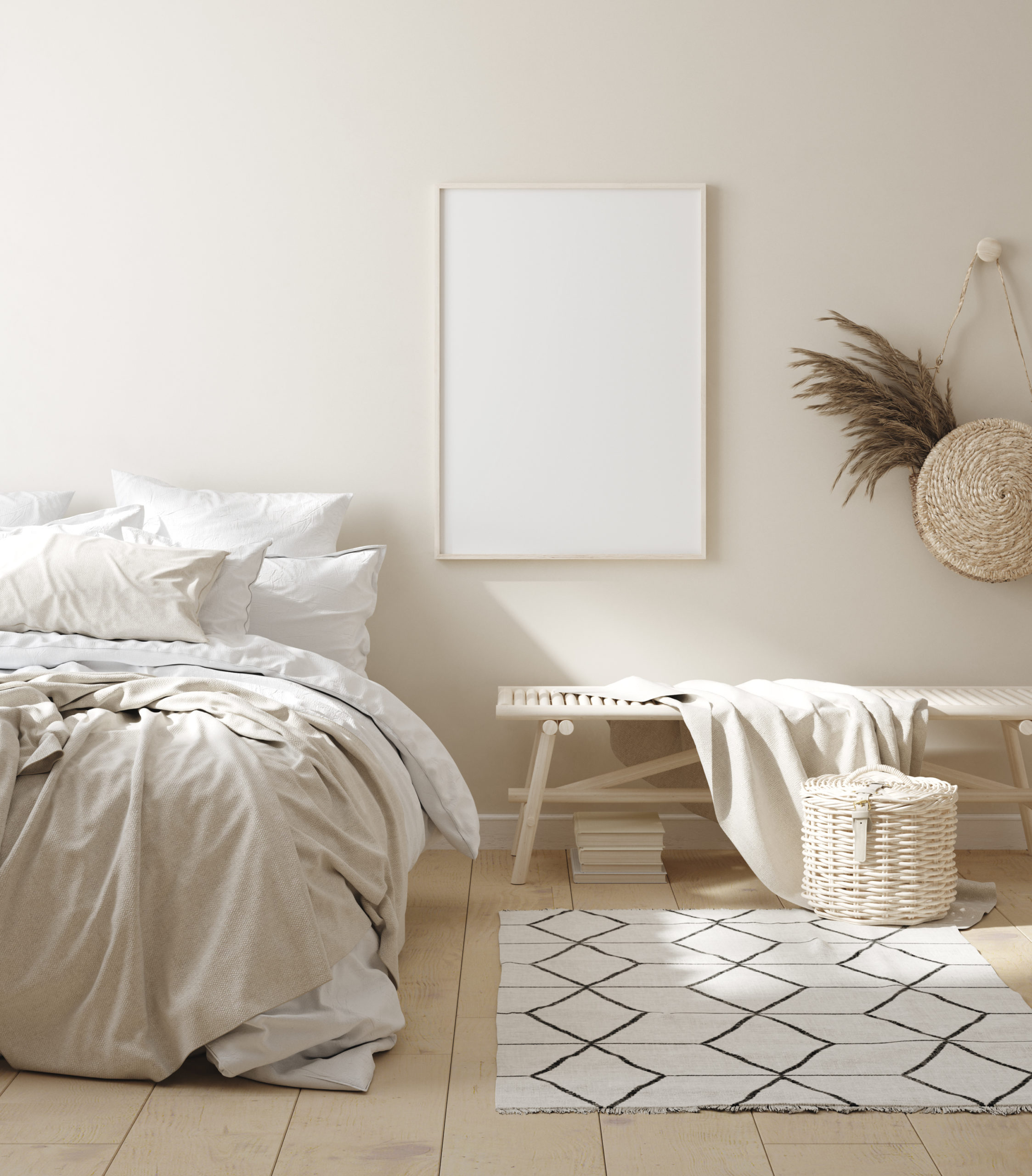 Mock up frame in bedroom interior background, beige room with natural wooden furniture Written by AtinteriorAdmin on 2020年10月15日. Previous